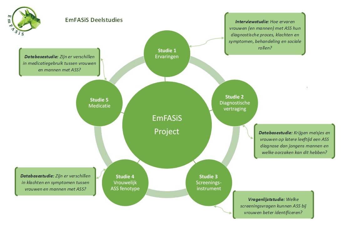 Het EmFASiS project bestaat uit 5 deelstudies (zie figuur).